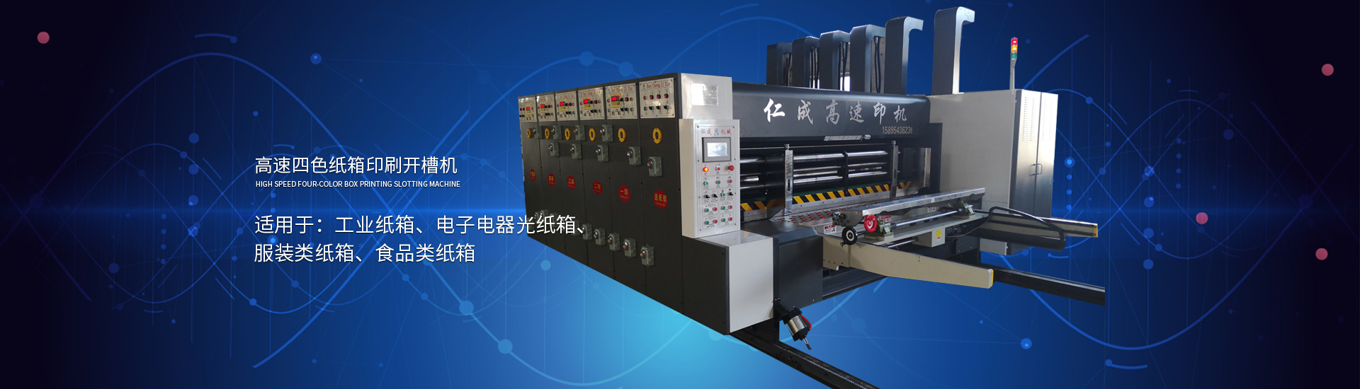 主要產(chǎn)品: 紙箱印刷開(kāi)槽機(jī), 高速印刷開(kāi)槽模切機(jī),自動(dòng)插格機(jī),釘箱機(jī),粘箱機(jī),仁成包裝機(jī)械,紙箱機(jī)械